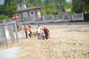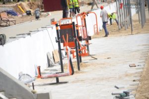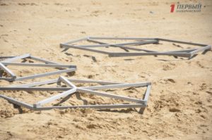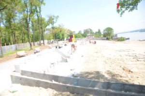 На левой части Правобережного пляжа подходят к завершающей стадии работы по реконструкции участка пляжа. На объекте работают почти два десятка рабочих и спецтехника.