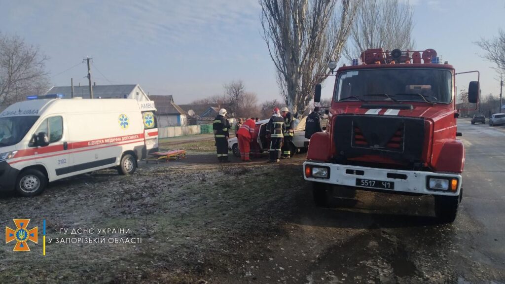 В Запорожской области легковушка врезалась в дерево: пассажирку из авто деблокировали спасатели, - ФОТО