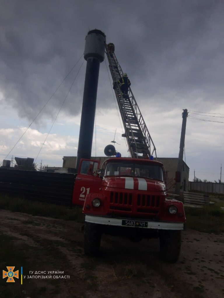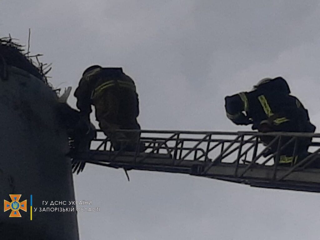 В Запорожской области на башне застрял птенец аиста: понадобилась помощь спасателей, - ФОТО
