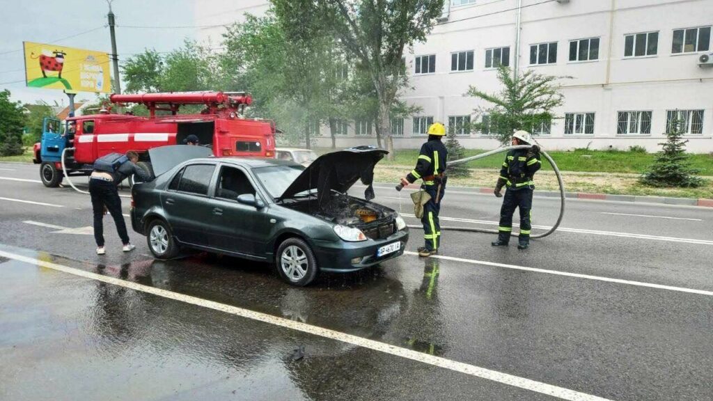 На перекрестке улиц Воинов Интернационалистов и Героев Украины в моторном отсеке машины «Geely CK» произошло короткое замыкание, и начался пожар. На место происшествия прибыли бойцы ГСЧС, которые перекрыли газовое оборудование и потушили возгорание.