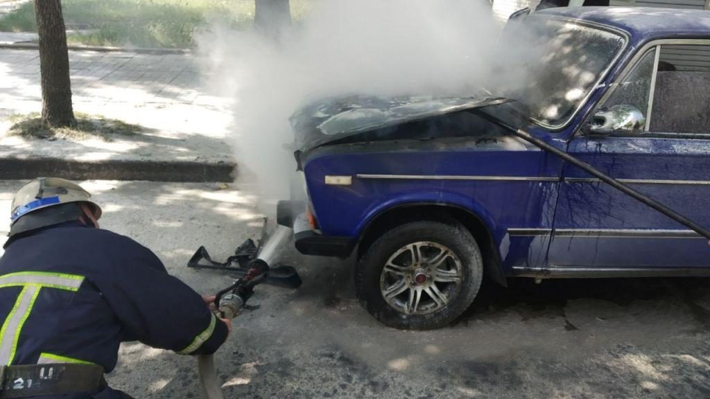 Пожар произошел по улице Шевченко. Прибыв на место происшествия, спасатели установили, что горит моторный отсек автомобиля «ВАЗ 2106».