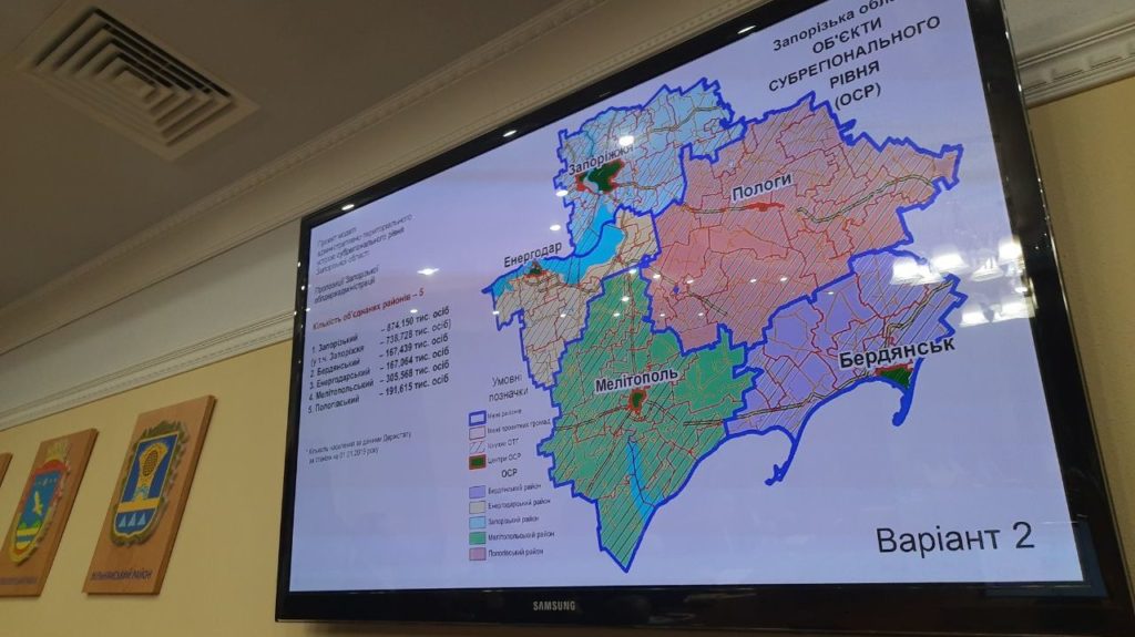 Сегодня уже члены рабочей группы на заседании в государственной администрации большинством голосов поддержали проект Минрегиона, который предусматривает создание 5 округов с центрами в Запорожье, Мелитополе, Бердянске, Васильевке и Пологах.