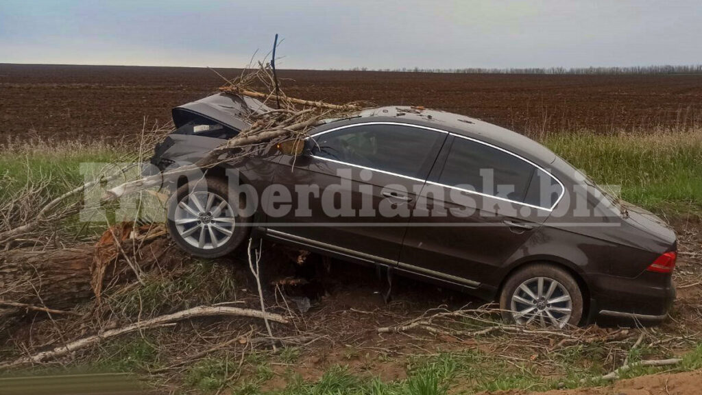 В Запорожской области автомобиль Volkswagen на большой скорости вылетел с дороги и врезался дерево.