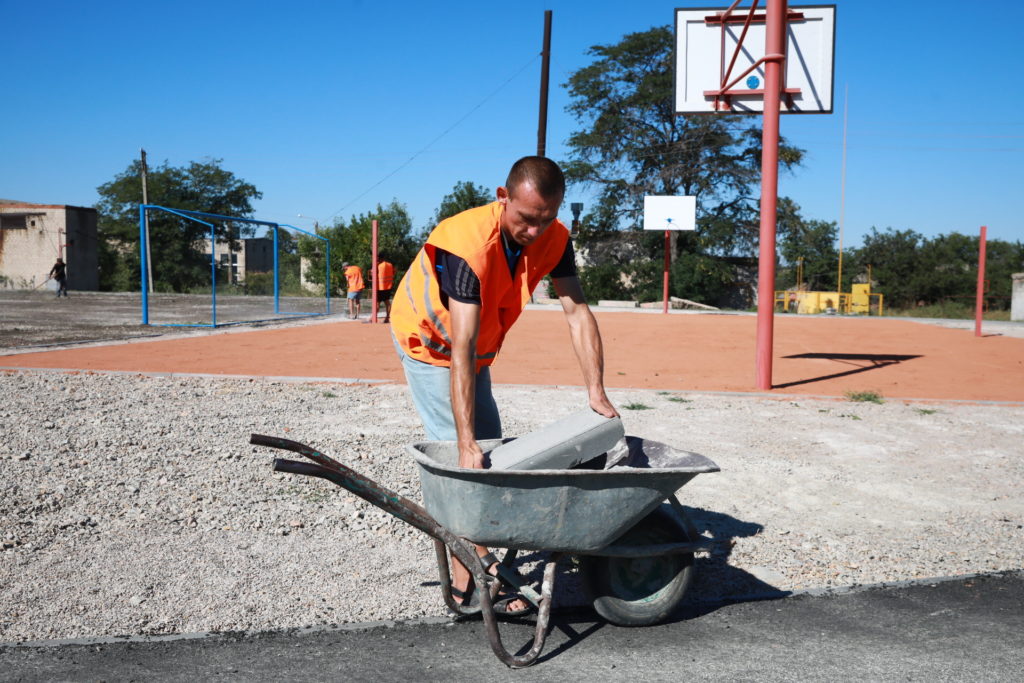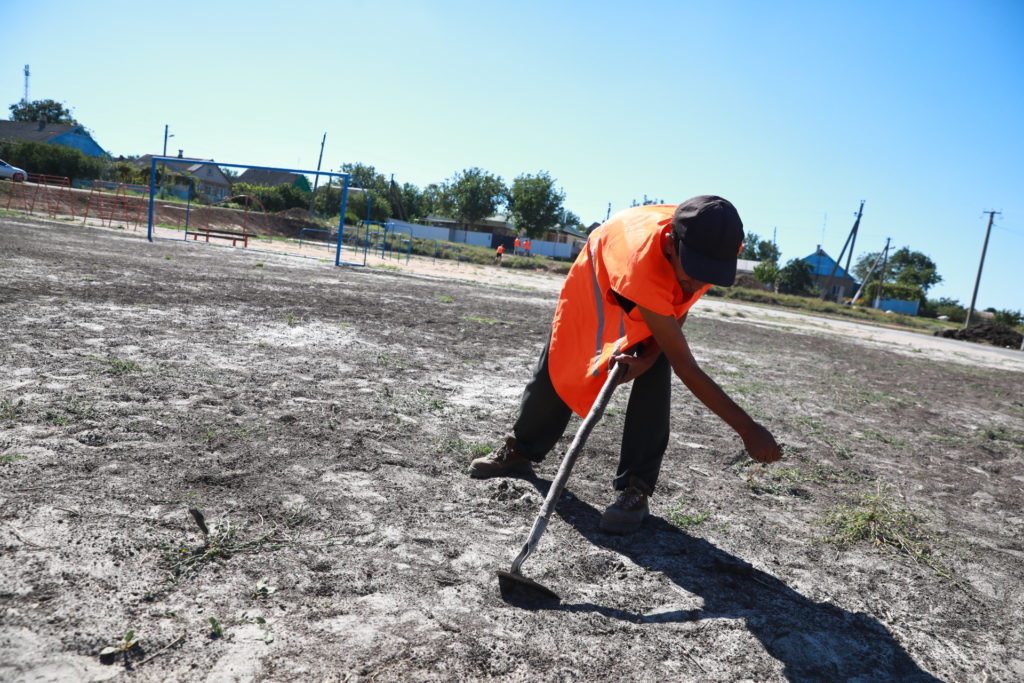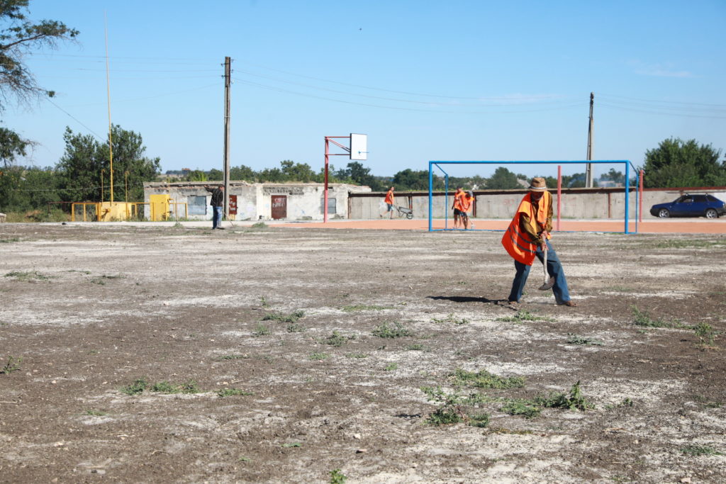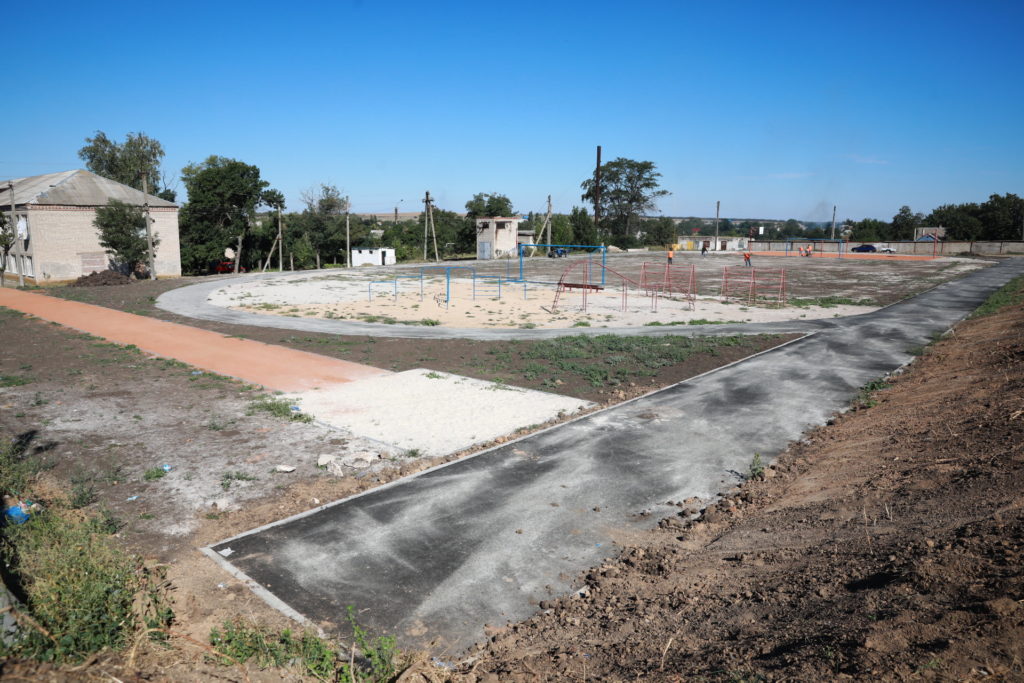 В Запорожской области, в селе Азовское, продолжается строительство нового школьного стадиона.