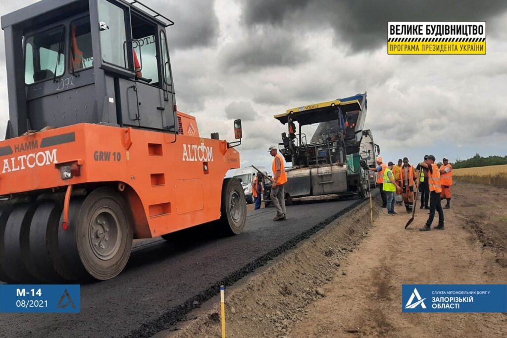 В Запорожской области активно продолжается капитальный ремонт дороги международного значения М-14 Одесса-Мелитополь-Новоазовск (на Таганрог).