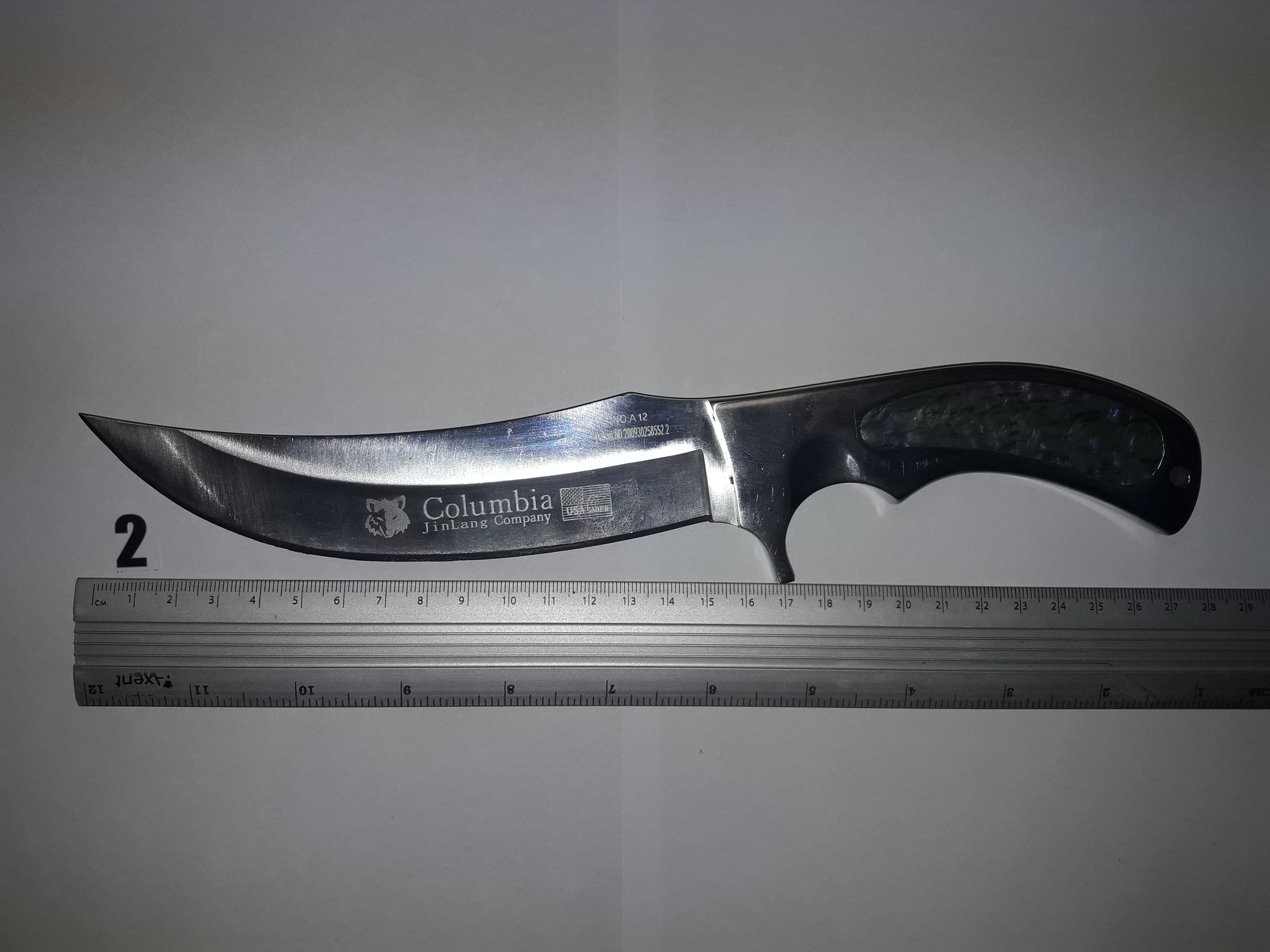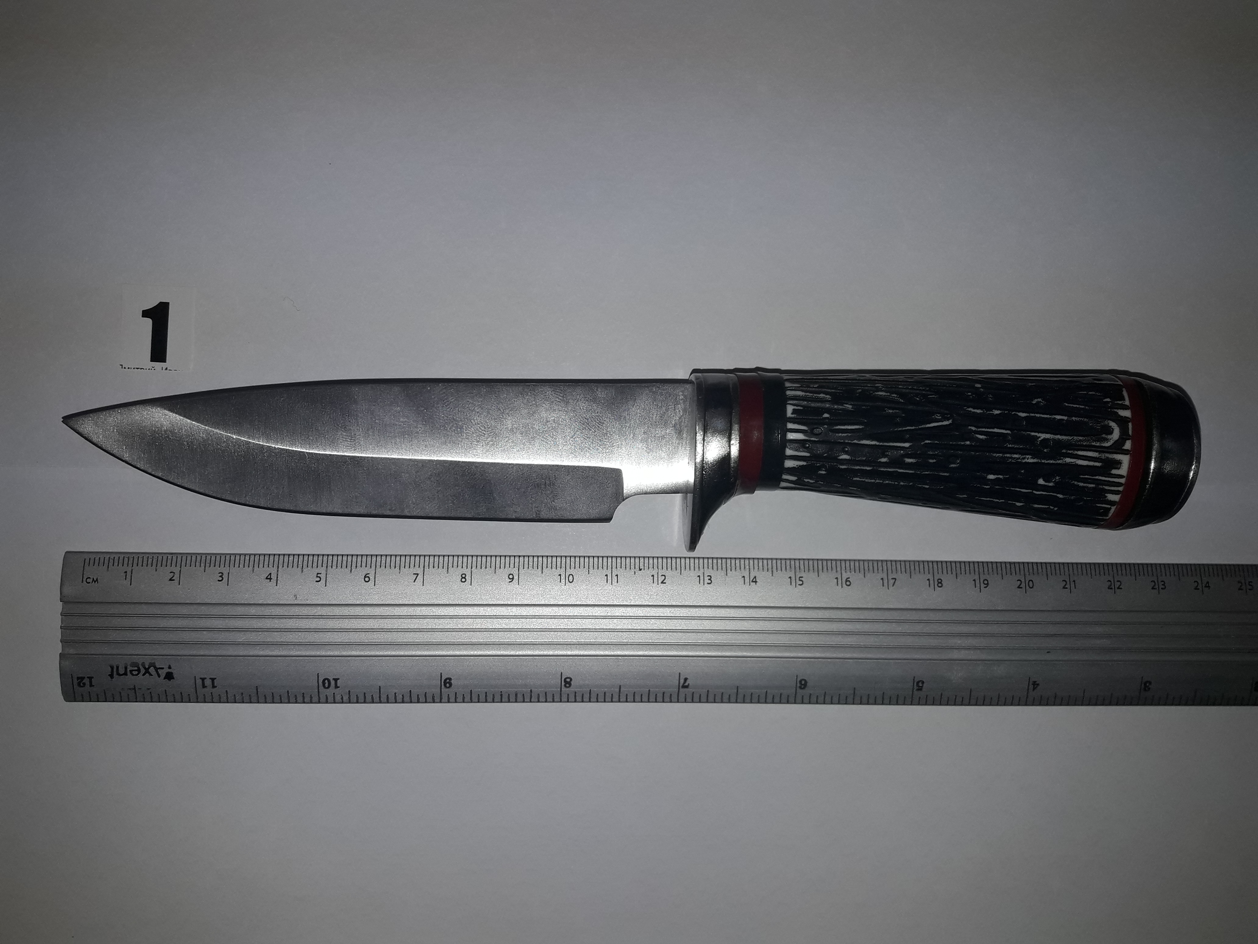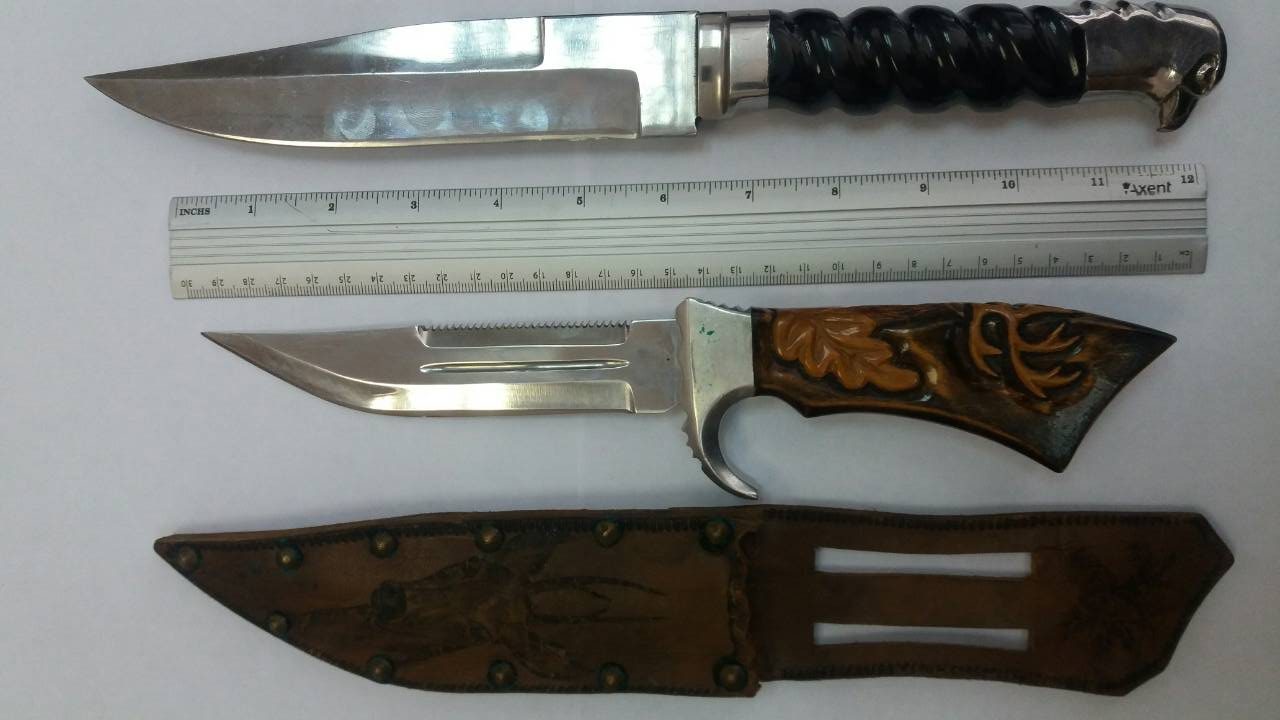 Один нож был общей длиной 22,5 см был с металлическим клинком и с рукояткой, которая выполнена из неизвестного материала, второй — 27,5 см с металлическим клинком и рукояткой.