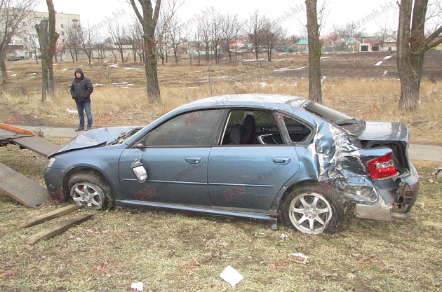 Авария произошла сегодня, 19 февраля, на Мелитопольском шоссе. Автомобиль Subaru на скорости снес столб. К счастью, в ДТП никто не пострадал.
