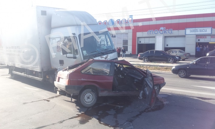 Так, на южном выезде из города в районе улицы Белякова, фура буквально смяла «восьмерку».