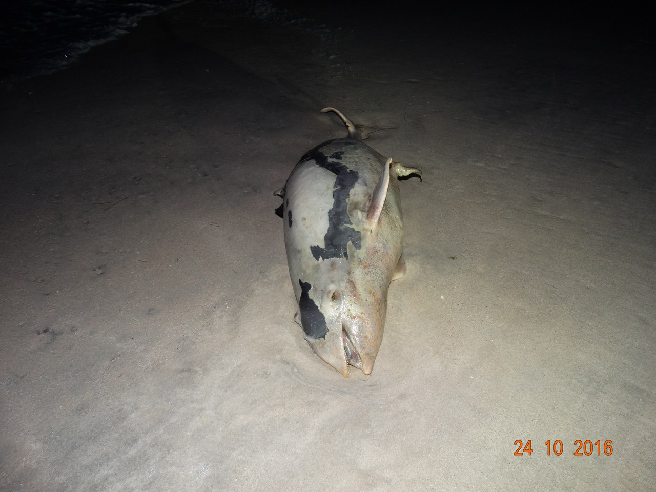 Вчера вечером, 24 октября, мертвого азовского дельфина выбросило на берег на Федотовой кoсe в Кирилловке (Запорожская область).