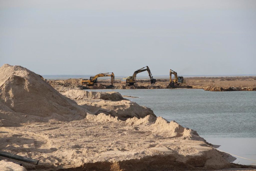 Директор Приазовского национального природного парка Дмитрий Воловик сообщил, что техника (четыре экскаваторы и земснаряд) начала работать еще в декабре и работа продолжается почти в круглосуточном режиме. Сейчас удалось расчистить более 400 метров соединительного канала шириной 40 метров и глубиной 2,5 метра. На входе в устье планируется строительство двух гидротехнических сооружений длиной 140 метров, шириной — шесть метров и высотой 1,5 метра от уреза воды.