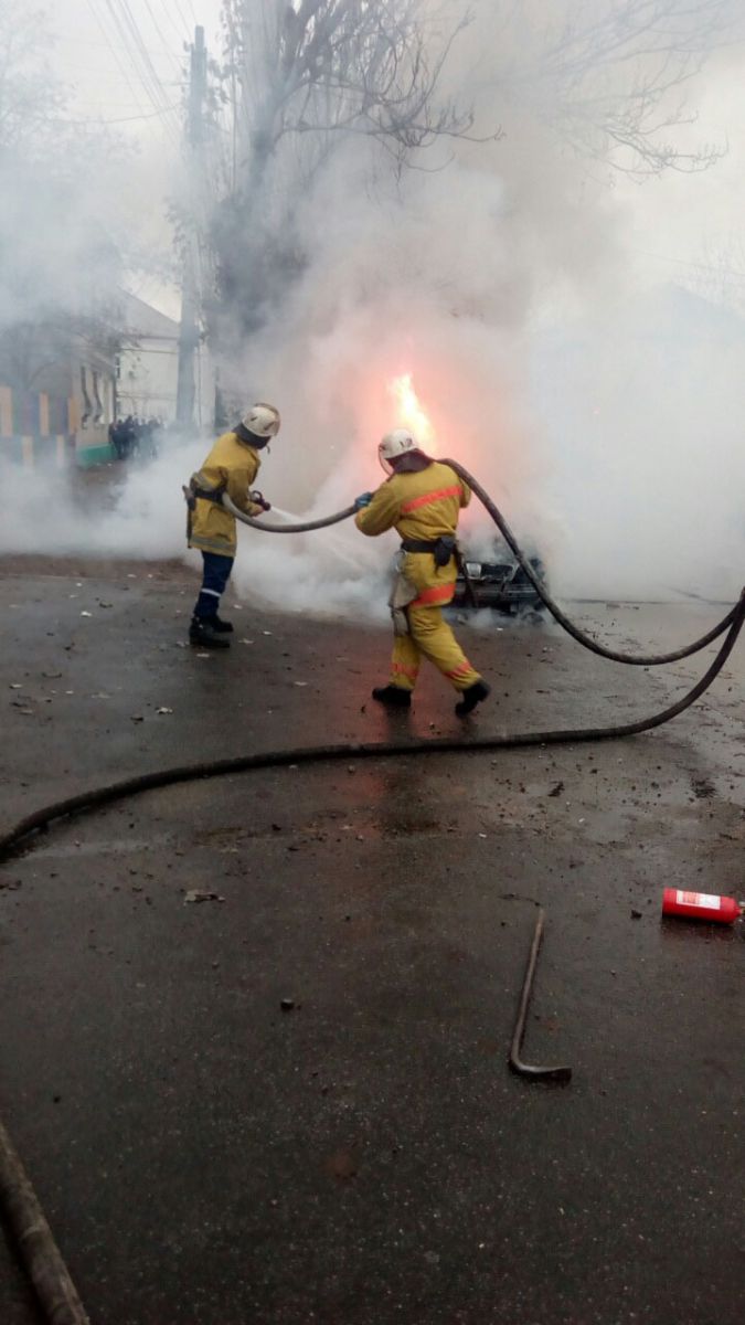 Фото горевшего авто разместил местный житель в соцсети ВКонтакте в группе «Типичный Мелитополь».