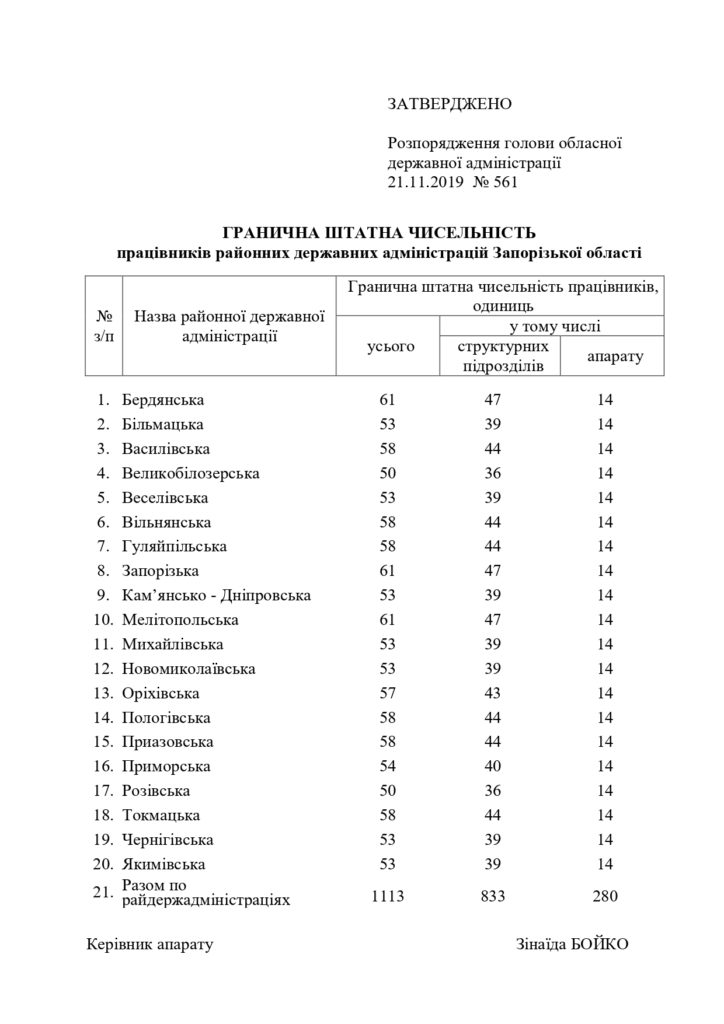 Согласно документа главы ОГА, с нового года количество чиновников в каждом районе уменьшится от 50 до 61 человека.