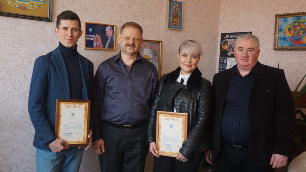 Руководитель Запорожской профсоюзной организации сотрудников полиции Виктор Нестеренко вручил письма-благодарности молодым предпринимателям Данилу Спице и Юлии Виноградовой, которые откликнулись на просьбы о помощи, и помогли с приобретением стройматериалов для ремонта одного из учреждений ГУНП.
