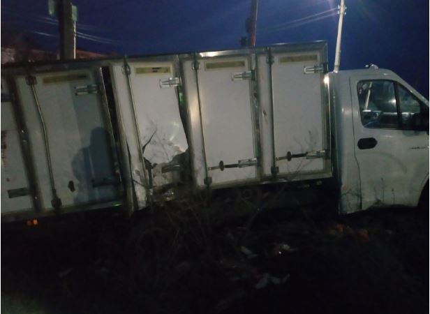 После столкновения с поездом, «ГАЗель» от удара отлетела и врезалась в столб.