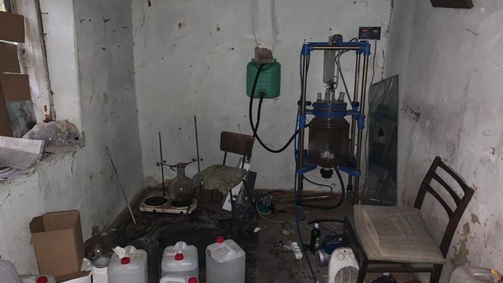 Прибывшие на место правохранители выявили подпольную нарколабораторию. Судя по всему, в ней изготавливали метадон в больших объемах.