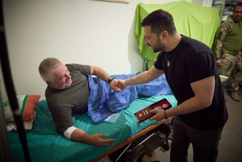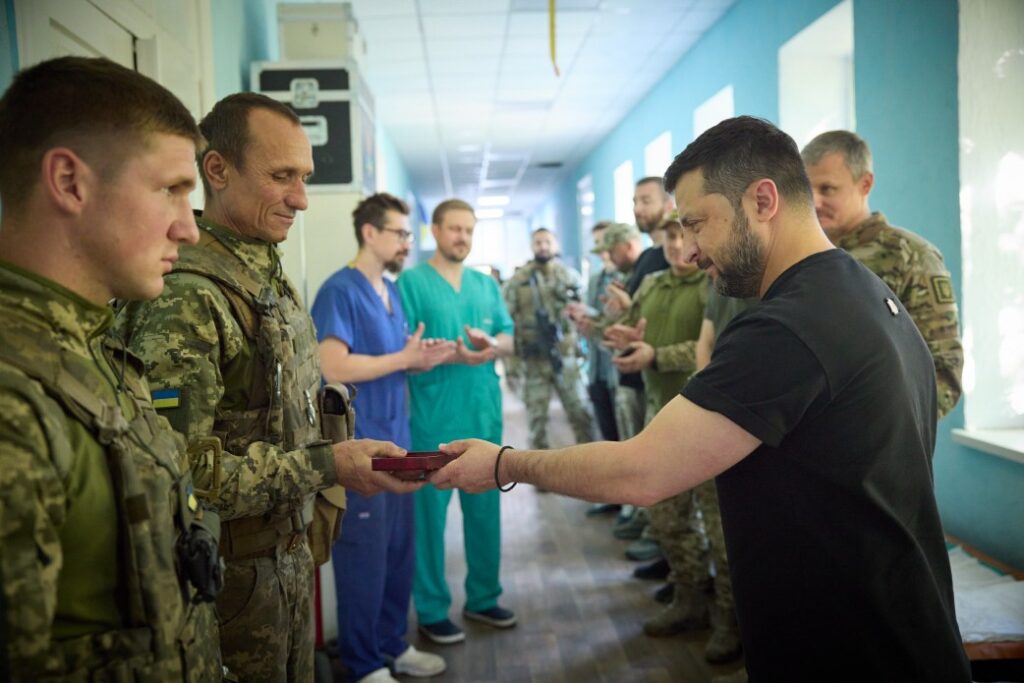 Владимир Зеленский вручил медицинским работникам, а также раненому защитнику государственные награды.