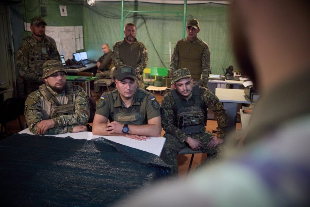 В частности, Глава государства встретился с командующим оперативно-стратегической группировкой войск «Таврия» Александром Тарнавским и побывал в расположениях 3-й бригады оперативного назначения имени полковника Петра Болбочана Национальной гвардии Украины, 47-й отдельной механизированной бригады «Магура», 117-й отдельной бригады, 15-й бригады оперативного назначения имени Героя Украины лейтенанта Богдана Завады НГУ, 65-й отдельной механизированной бригады, 116-й отдельной механизированной бригады, а также на передовых пунктах управления 46-й отдельной аэромобильной бригады Десантно-штурмовых войск ВСУ и 118-й отдельной механизированной бригады.