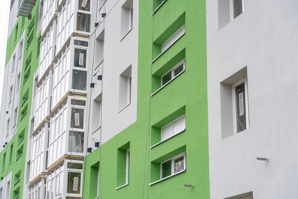 «Сейчас строители утепляют и окрашивают фасад. Он готов на 80%. Почти завершены работы по остеклению. Вставляем энергосберегающие окна, в которых стеклопакеты заполнены инертным газом. К тому же, все балконы первого этажа оборудованы стеклом, которое устойчиво к разбиванию», — сообщил главный инженер подрядной организации Николай Николаевич.