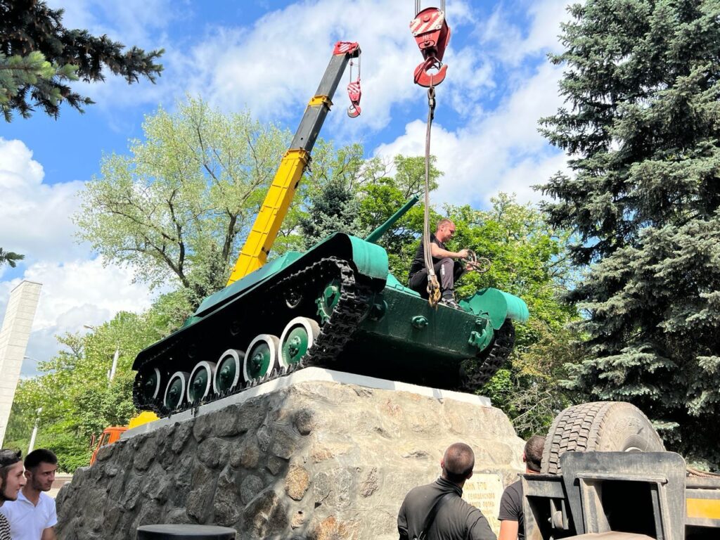 Враг снимает танк с постамента в Запорожской области для «реставрации», — ФОТО, ВИДЕО