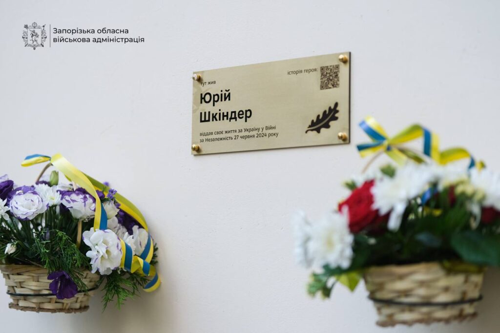 В Запорожье на фасаде дома, где жил доброволец Юрий Шкиндер, открыли мемориальную доску в его честь. Мероприятие собрало родных, побратимов бойца и представителей ветеранского сообщества.