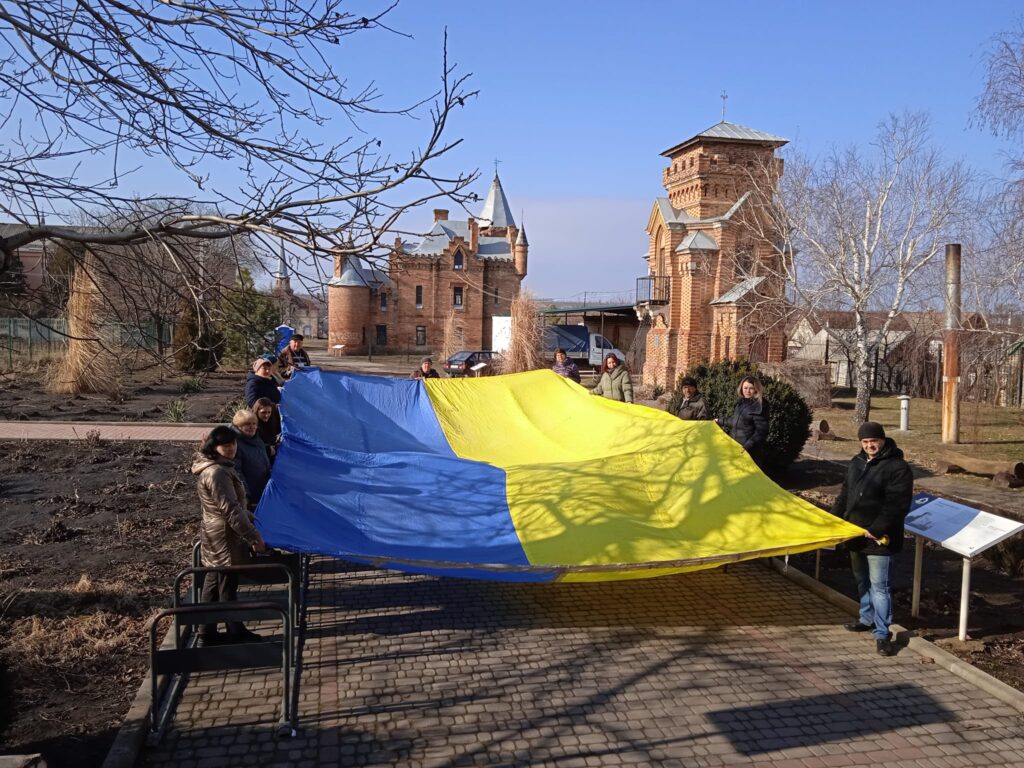 Сьогодні в День Єднання в КЗ ВІАМЗ «Садиба Попова» також розгорнули прапор, який майорів над бухтою Балаклава в Криму. Його привезли у 2014 році в Запоріжжя, і він став постійним учасником Майдану.