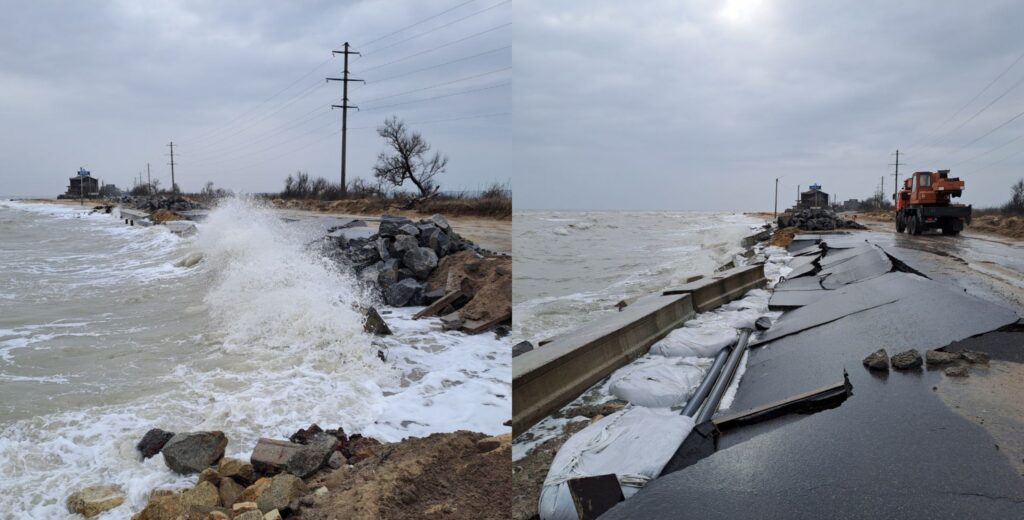 Березень 2024-го. Вода руйнує дорогу на Бердянську косу