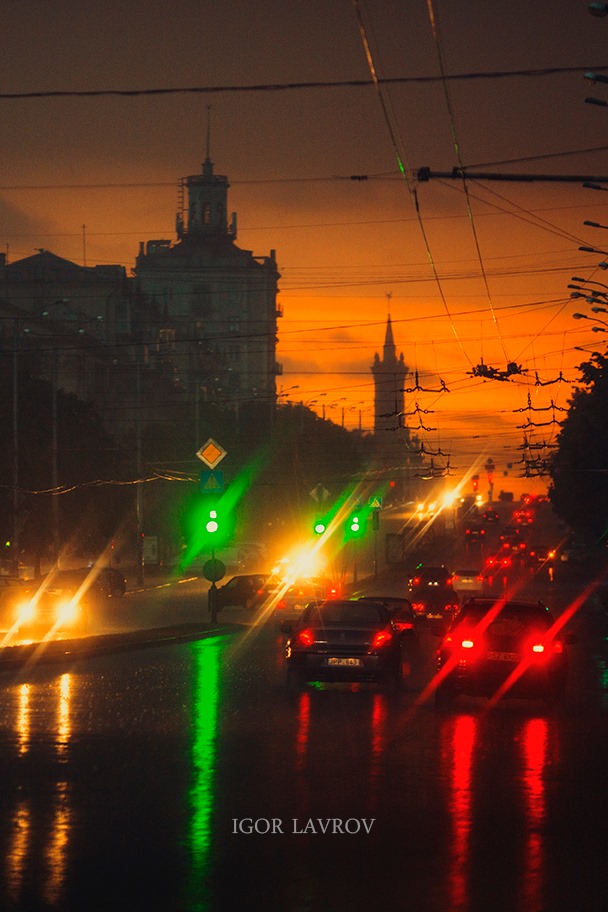 Игорь Лавров раз в это время как раз возвращался домой, когда сильный ливень накрыл весь город. Несмотря на проливной дождь, небо долгое время было ярко желтым, иногда даже оранжевым, что и удалось заснять фотографу.