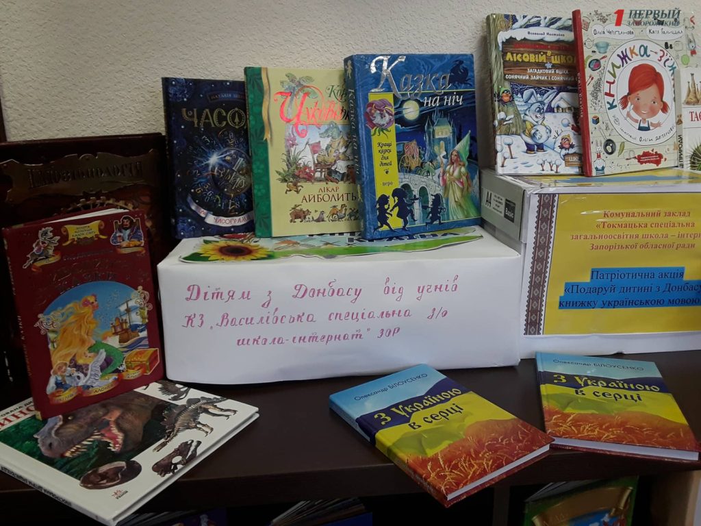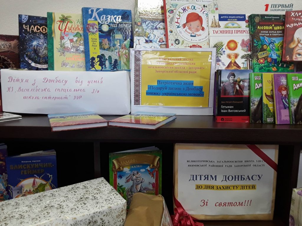 Отметим, что одним из примеров реализации этих составляющих является акция «Подари ребенку книгу на украинском языке», которая проходила в Запорожской области. Во время этой акции школьники собрали более двух тысяч книг. Здесь представлена разнотематическая и разножанровая литература: сказки, фантастика, художественные, а также научные издания. Все эти книги сегодня вертолетом доставят на Донбасс. Уже завтра их передадут в местные библиотеки и детям лично в руки.