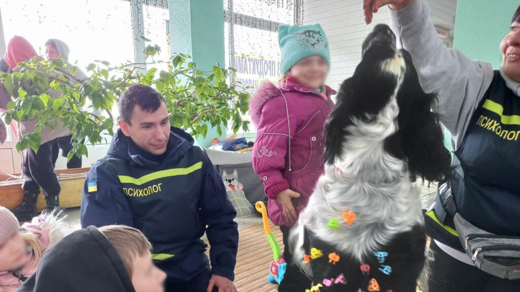 ГСЧС-ники Запорожской области совместно с психологом-канистерапевтом школы «Доктор Дог» посетили гуманитарный штаб, чтобы оказать детям поддержку и снять психоэмоциональное напряжение.