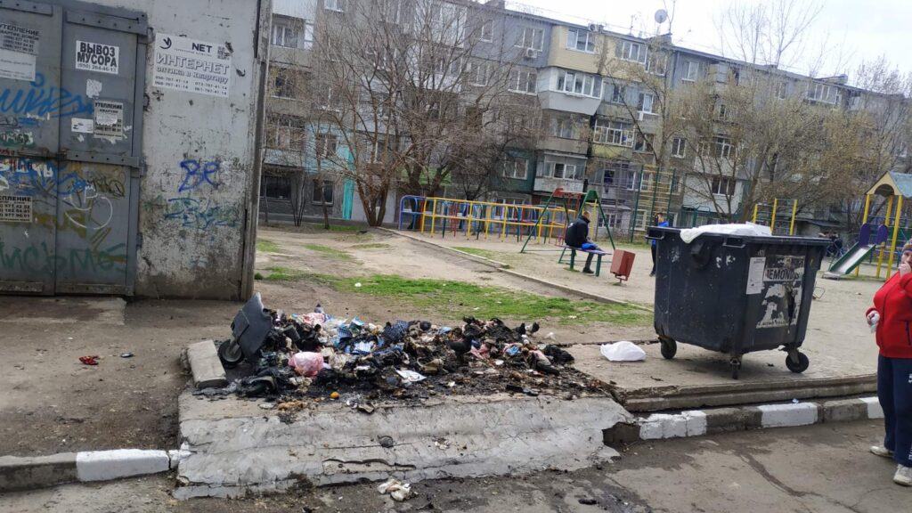На улице Чумаченко, 37 — сразу два горящих контейнера на площадке. По словам очевидцев, компания молодых людей швырнула в контейнер взрывпакет. Местные жители вызвали пожарных.