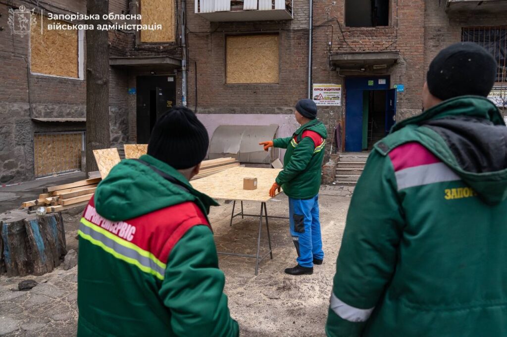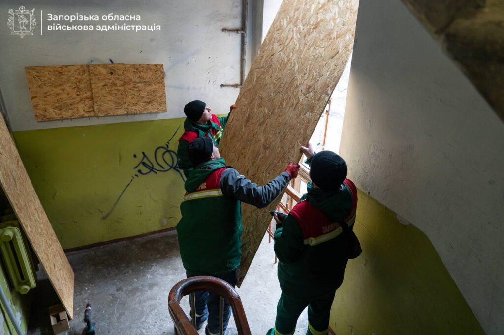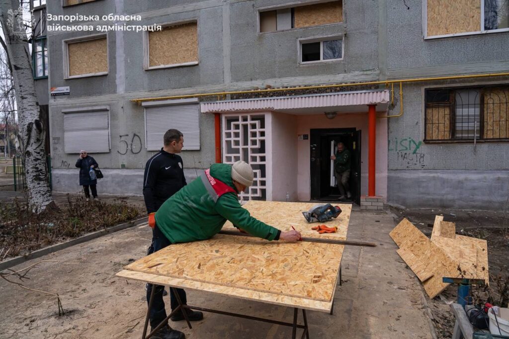 Закрывают окна и вывозят строительный мусор: в Запорожье ведут ремонт в поврежденных врагом домах, — ФОТО, ВИДЕО