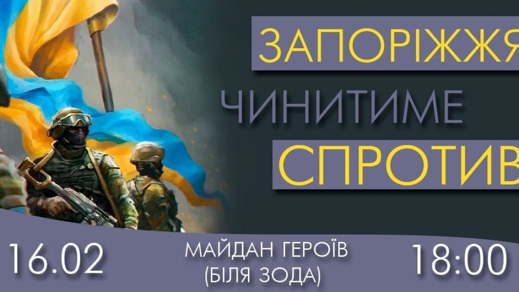 16 февраля в 18:00 активисты соберутся на Майдане героев возле Запорожской облгосадминистрации на мероприятие, которое назвали «Вече: Запорожье будет сопротивляться!»