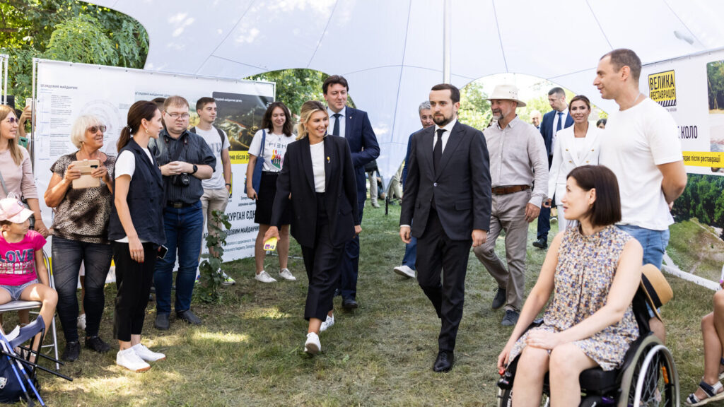 Дружина Президента України Олена Зеленська разом з заступником голови Офісу Президента Кирилом Тимошенком і міністром культури та інформаційної політики Олександром Ткаченко відвідала острів Хортицю та ознайомилася з «Великою реставрацією» музейної  інфраструктури.