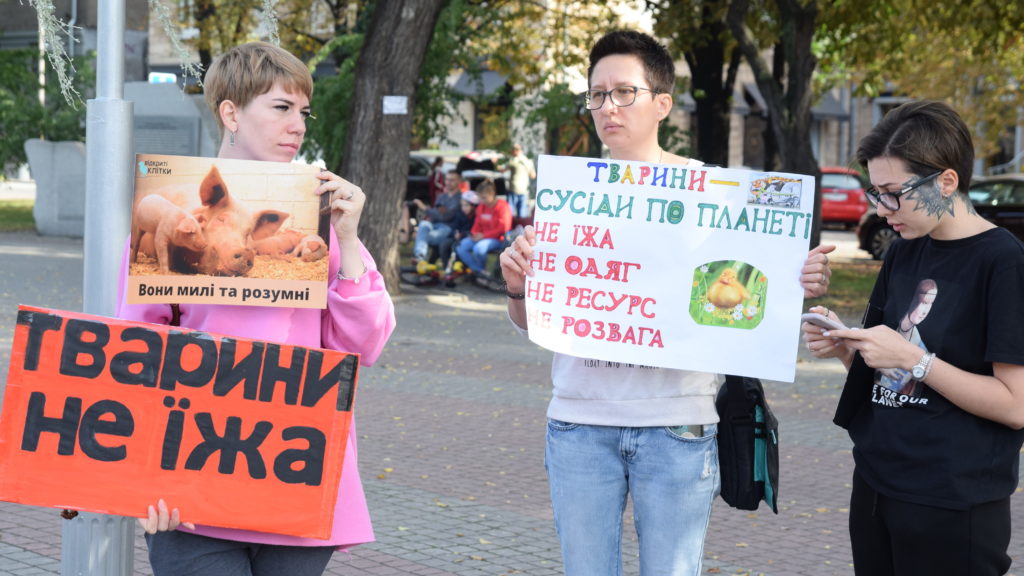 В Запорожье на акцию пришло около десяти человек. Зоозащитники выступали за закрытие меховых ферм, цирков с животными, зоопарков. Они против эксплуатации животных, в том числе для фото и видеосъемок. Интересно, что мужчина, который в парке «арендует» для фото своих голубей и таким образом зарабатывает деньги, решил подойти к участникам акции. Они ему рассказали, что против подобных действий.