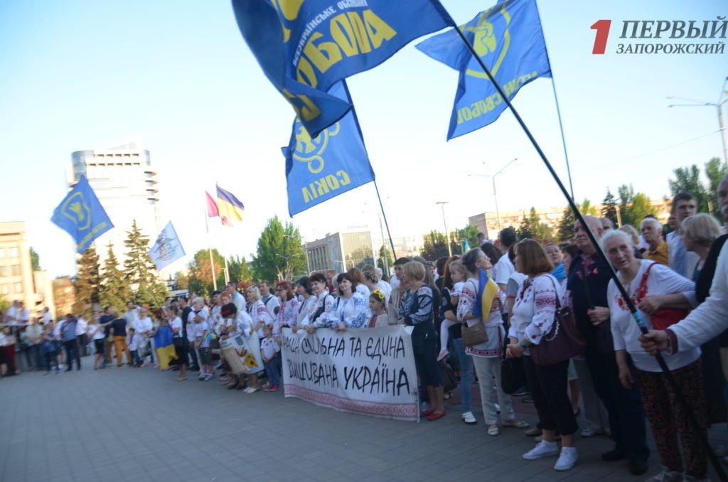 Торжественное шествие традиционно стартовало около Запорожского городского совета. После колонна двинулась по направлению к Запорожской облгосадминистрации. Участники скандировали «Слава Украине», «Україна єдина».