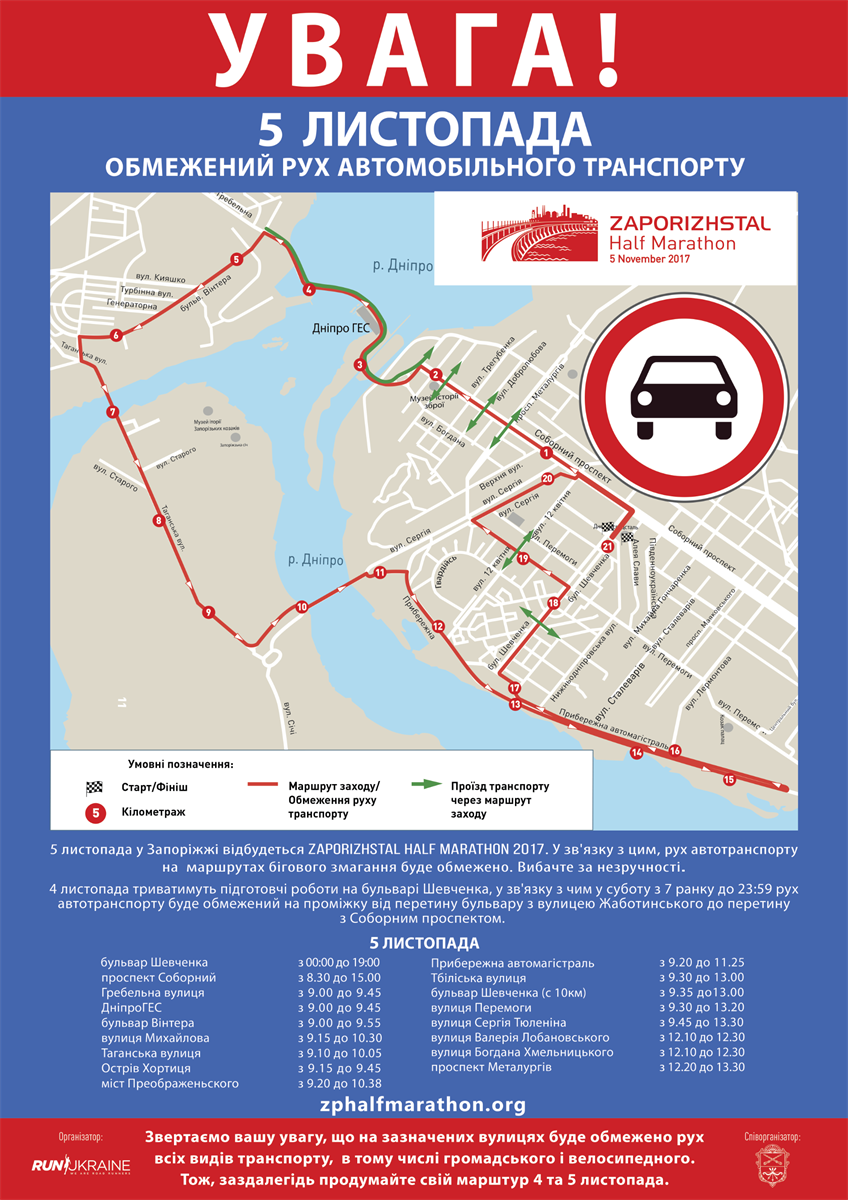 Уже в это воскресенье, 5 ноября впервые в Запорожье состоится массовое спортивное мероприятие Zaporizhstal Half Marathon 2017.