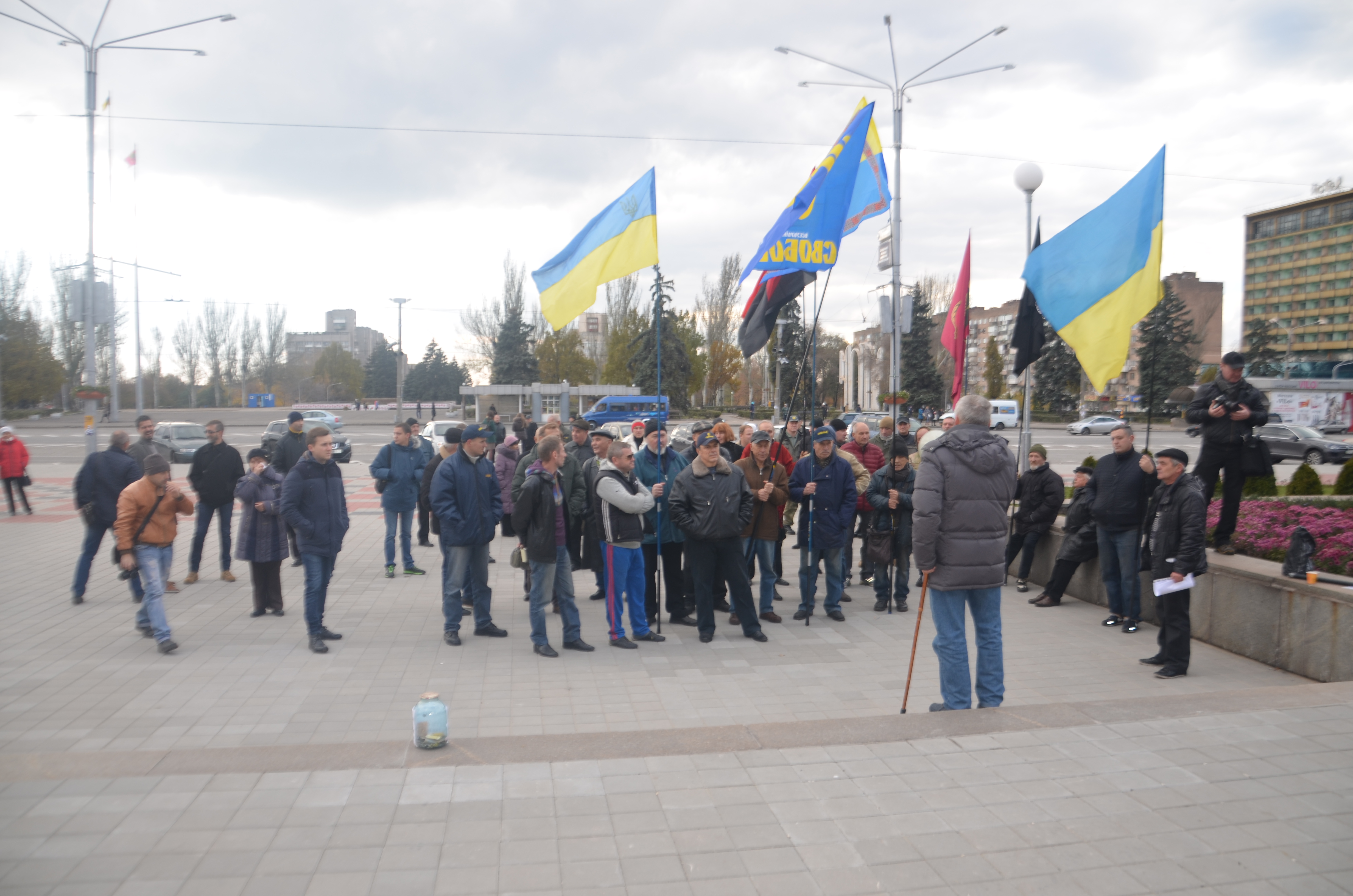 На митинге приняли участие около трех десятков запорожцев. Тематикой стала люстрация власти в связи с е-декларированием.