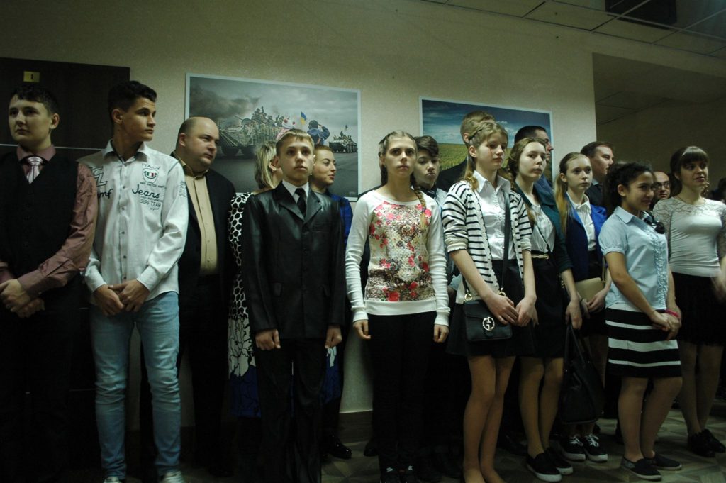 После открытия фотовыставки, запорожский киборг и депутат горсовета Вячеслав Зайцев вместе с заместителем командира 55-ой бригады Игорем Неминским провели урок мужества для воспитанников Матвеевской школы-интерната, рассказав о боевом пути и подвигах запорожцев в зоне АТО.
