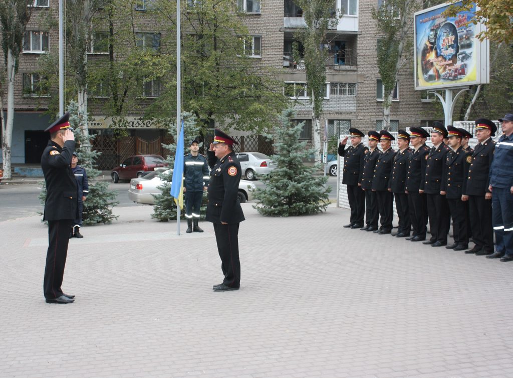 Запорожские спасатели торжественно подняли флаг ко Дню защитника Украины