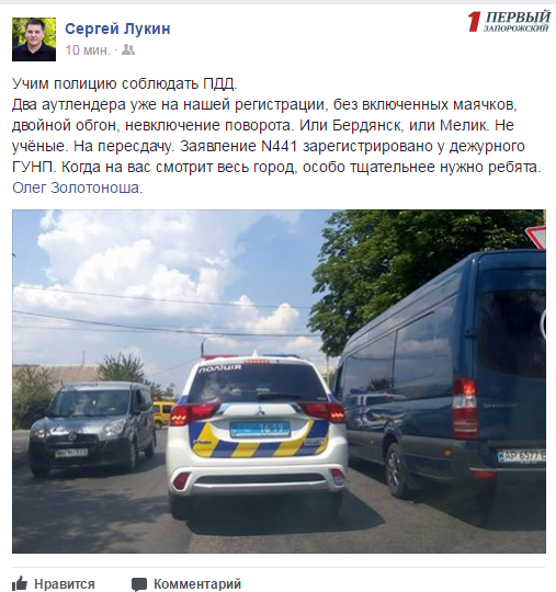 Об этом сообщил на своей страничке в сети общественный активист Сергей Лукин. Он отметил, что нарушителями оказались оперативники из Мелитопольского райотдела.
