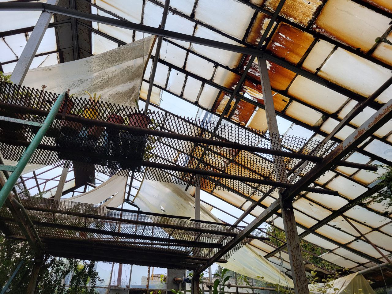 Кактусарий стал одним из тех помещений, которые больше всего пострадали от обстрелов. Во время взрывной волны выбило как внешнее, так и внутреннее стекло, осколки которого осыпались прямо на колючие растения.