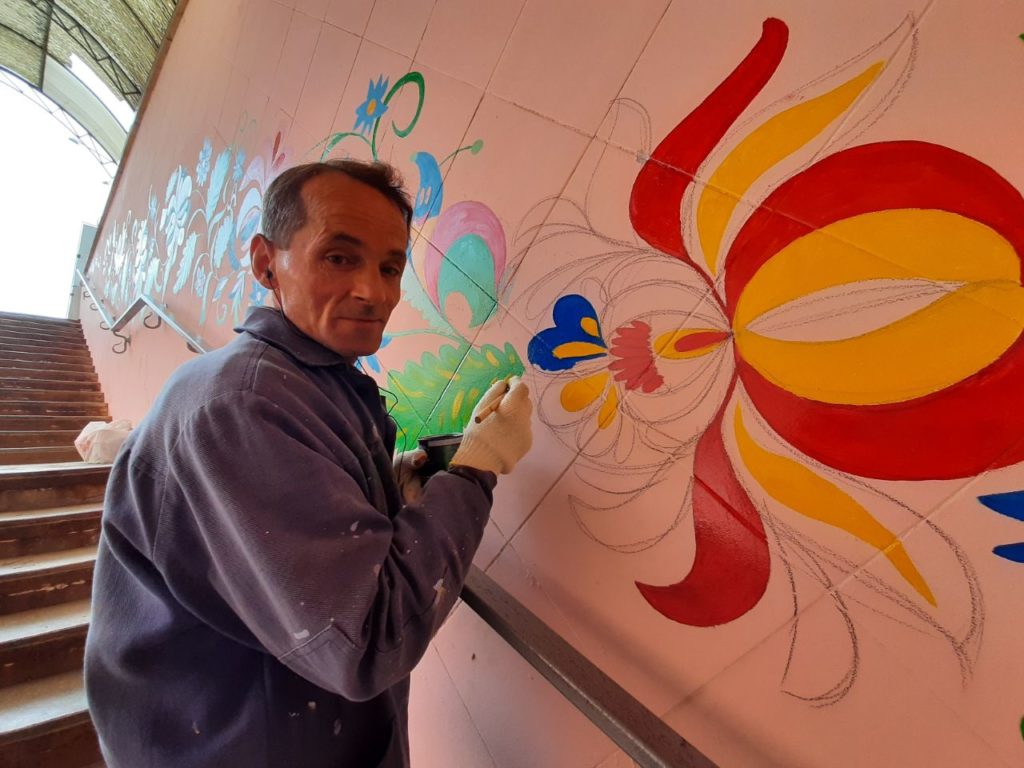 Запорожский уличный художник расписывает стены в подземном переходе на Фестивальной, – ФОТО