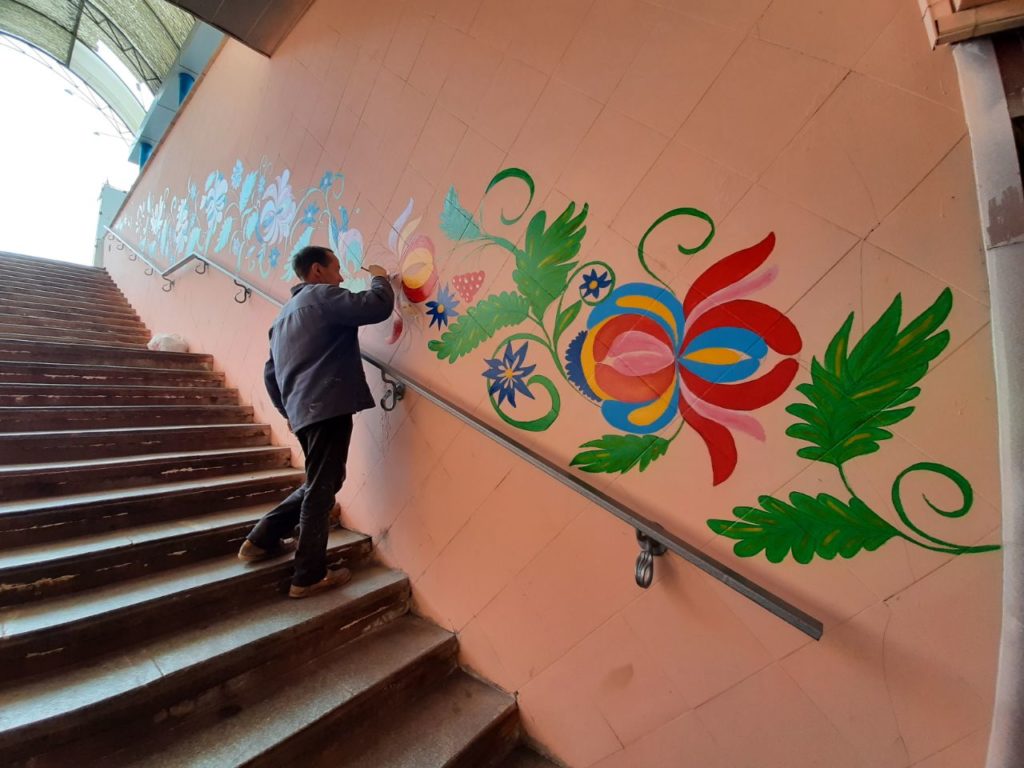 Известный своей «городской живописью» запорожец в очередной раз проявил инициативу и начал разукрашивать стены в подземном переходе возле «Интуриста».