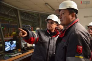 — На большом экране мы видим домны, аглофабрику и основные агрегаты. У нас установлены на предприятии сотни тысяч датчиков, также на заводе работает около 600 камер. Информация обрабатывается в серверах и процесс визуализируется. Если мы хотим получить детальную информацию по каждой печи и цеху, то мы просто с компьютера выводим на экран все основным параметром — давление, температуру, загазованность. Группа людей контролирует технологию и безопасность. Никто руками не вбивает информацию. У нас все на 100% автоматизировано. Такая диспетчерская система в скором времени появится в каждом цеху. Ее разрабатывали наши программисты на протяжении трех лет, идею мы черпали у корейских специалистов, только у них программа разрозненная, а мы решили сделать целостную систему на весь завод, — рассказал гендиректор ПАО «Запорожсталь» Ростислав Шурма.