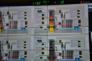 Первым делом губернатор и двое его замов — Элла Слепян и Александр Бабанин увидели, каким образом осуществляется контроль за технологическим процессом внутри диспетчерской заводоуправления.