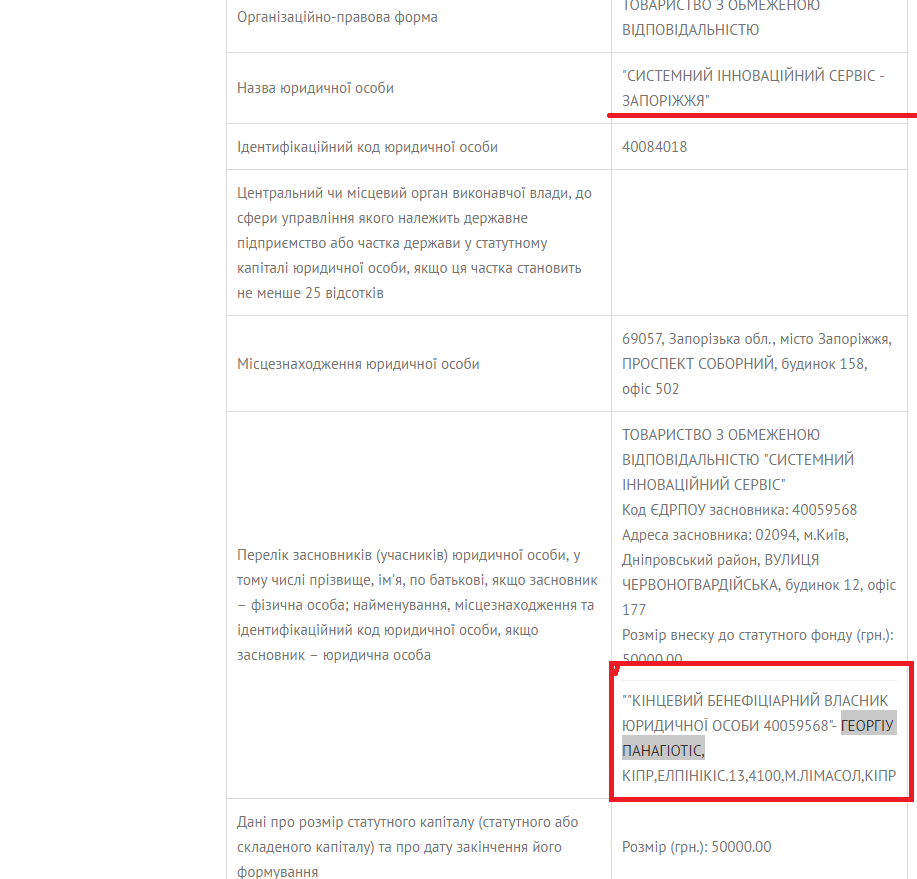 Победителем торгов стала фирма «Системный инновационный сервис-Запорожье». Фирма зарегистрирована в Киеве, а ее директором числится Татьяна Головко, которая ранее была основателем донецкой фирмы «Спецдомнаремонт». Примечательно, что конечный владельцем фирмы числится некий Георгиу Панагиотис из…Кипра.