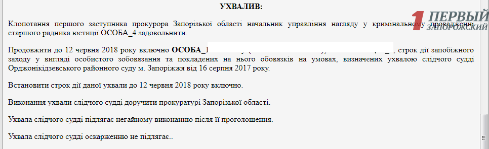 Орджоникидзевский районный суд Запорожья продлил меру пресечения в виде личного обязательства по отношению к выходцу из Чечни, разыскиваемого в России за участие в вооруженном формировании.