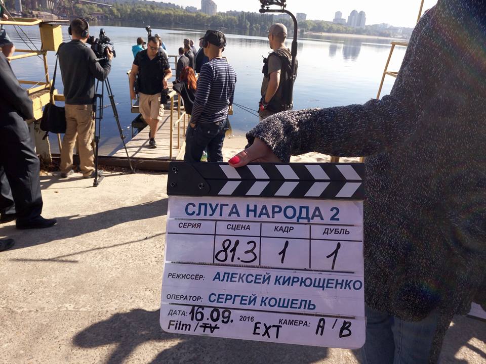 Сегодня съемки сериала проходят недалеко от недостроенных мостов. Запорожская телеведущая и журналистка Марина Моисеенко на своей странице в Facebook разместила фото со съемок сцен с участием Владимира Зеленского.