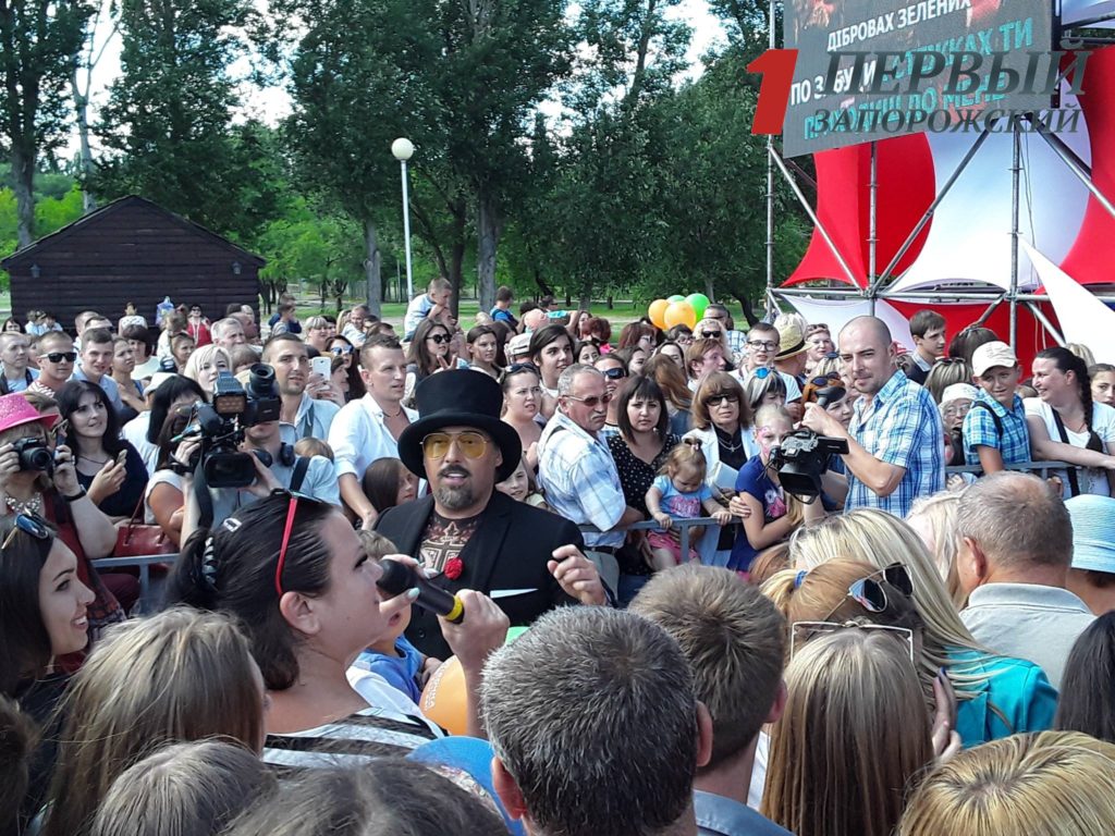 Вчера, на каскаде фонтанов «Радуга» известный шоумен Дмитрий Коляденко выбирал в Запорожье самого голосистого человека. Все желающие могли спеть вместе с эпатажным артистом и принять участие в караоке-батлах.