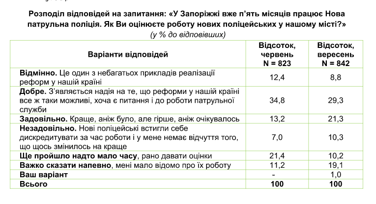 В то же время каждый десятый запорожец недоволен действиями новых полицейских.